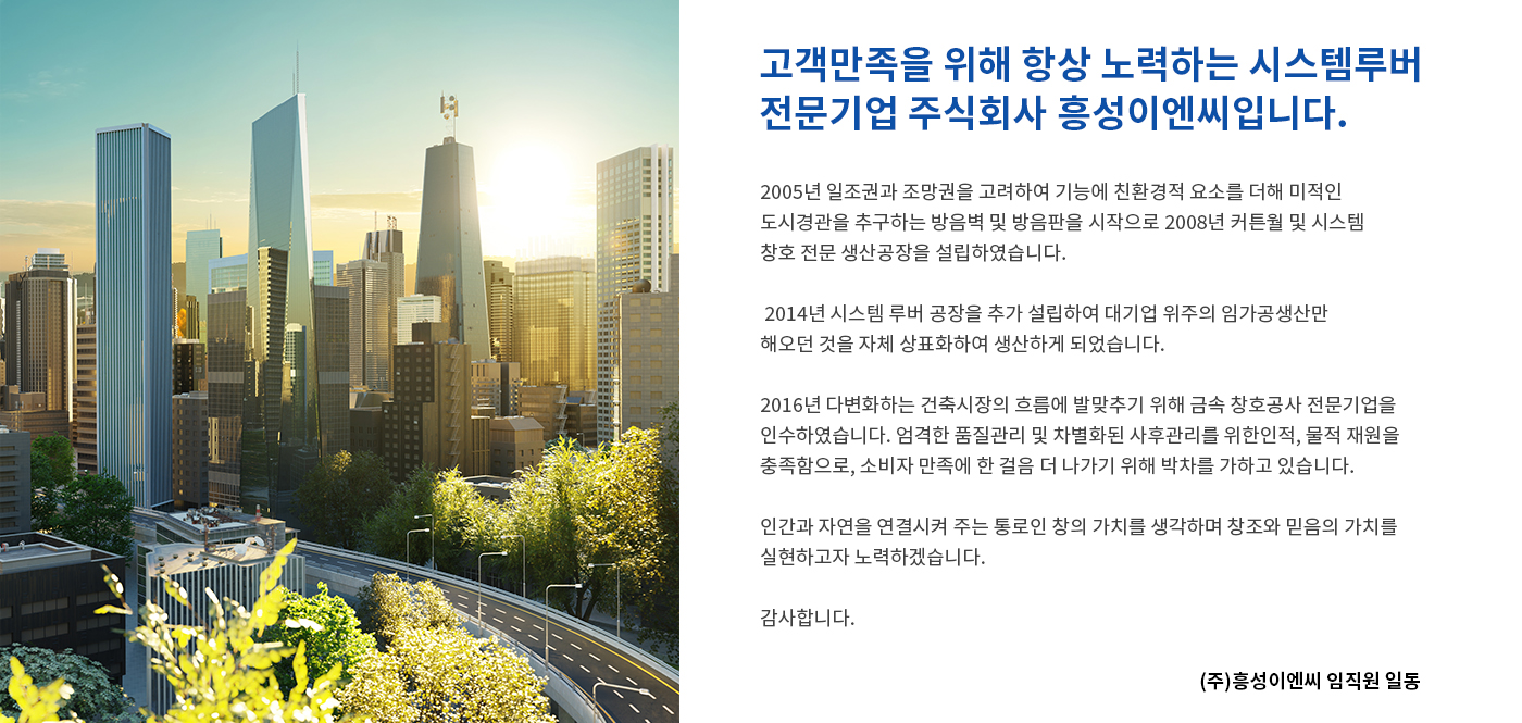 도시경관을 추구하는 방음벽 및 방음판을 시작으로 2008년 커튼월 및 시스템
